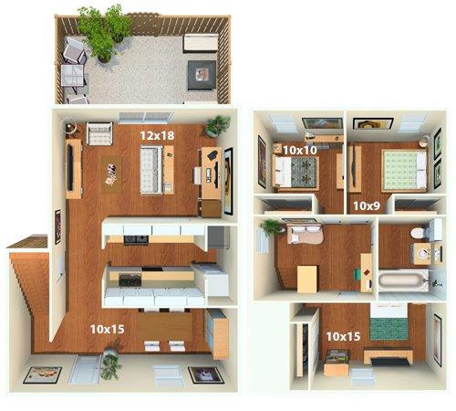 2 beds, 2 bath, 1328 sqft