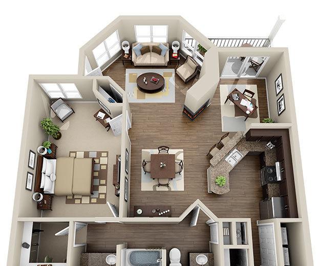 1 bed, 1 bath, 557 sqft
