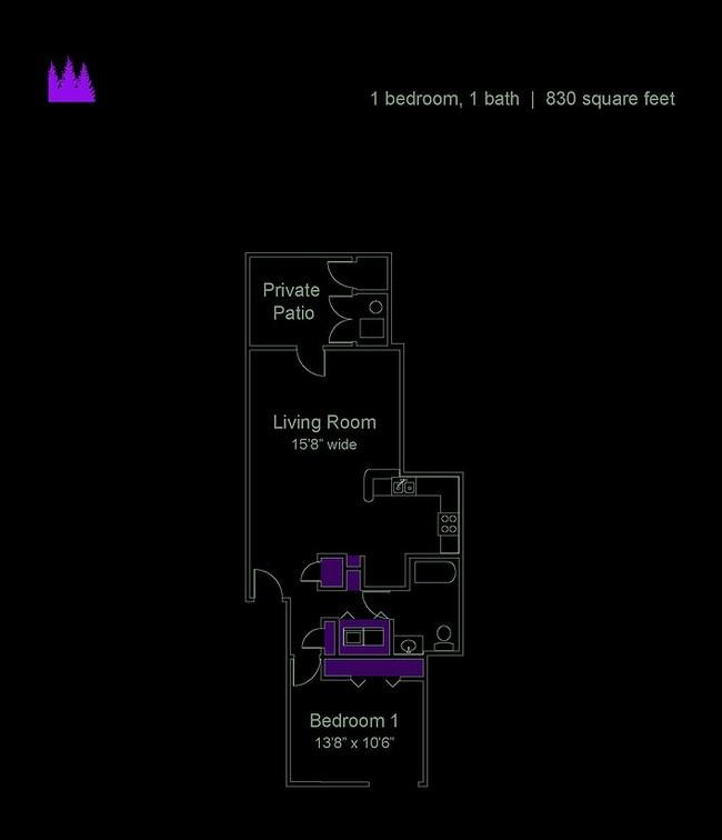 1 bed, 1 bath, 357 sqft