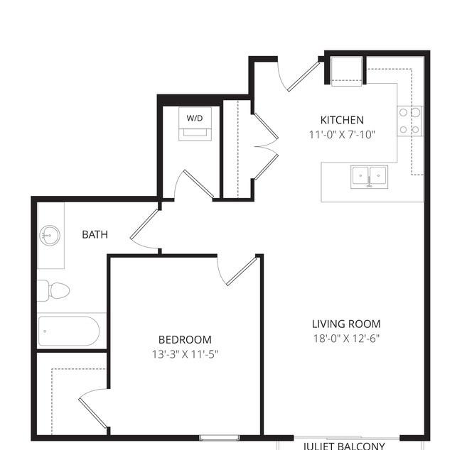 1 bed, 1 bath, 453 sqft