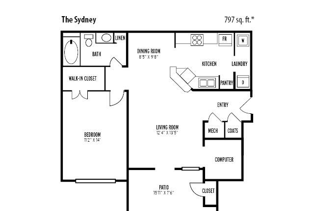 1 bed, 1 bath, 351 sqft