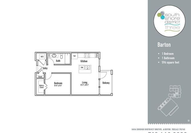 1 bed, 1 bath, 596 sqft
