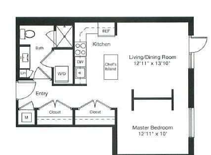 1 bed, 1.5 baths, 987 sqft