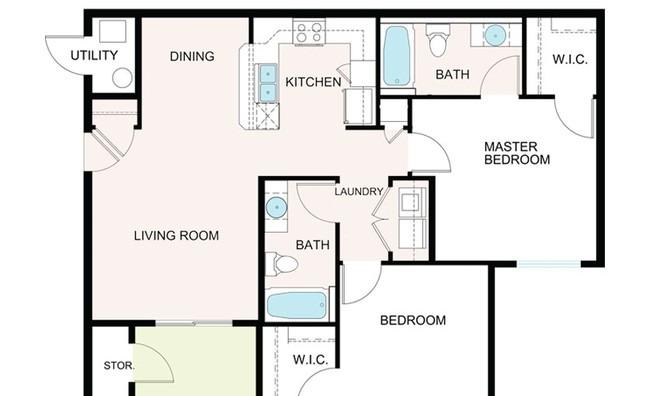 2 beds, 2 baths, 752 sqft