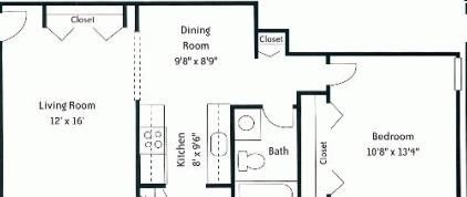 2 beds, 1.5 baths, 438 sqft