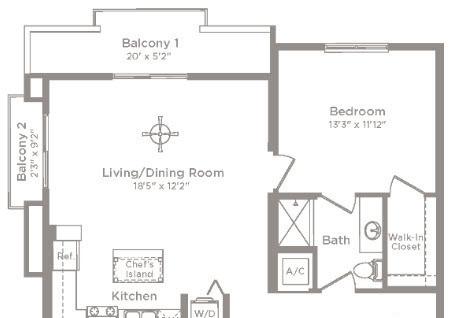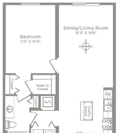 1 bed, 1 bath, 612 sqft