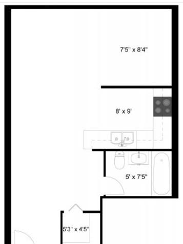 1 bed, 1 bath, 463 sqft