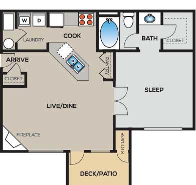 1 bed, 1 bath, 552 sqft