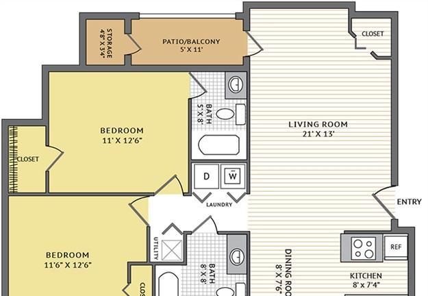 1 bed, 1 bath, 554 sqft