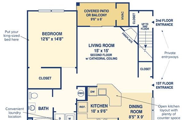 1 bed, 1 bath, 766 sqft