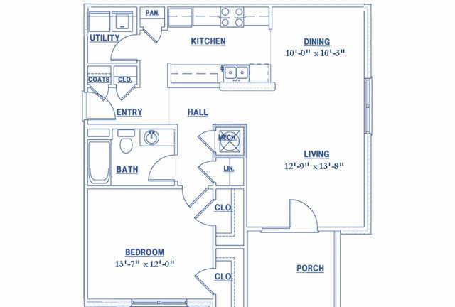 1 bed, 1 bath, 235 sqft