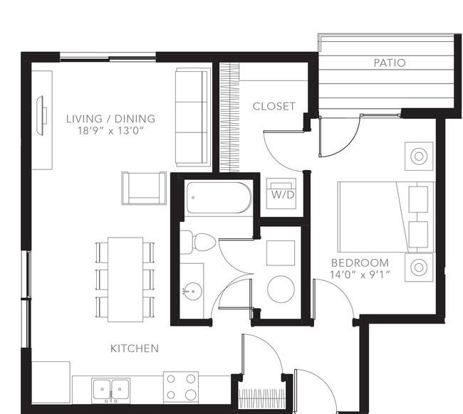 1 bed, 1 bath, 355 sqft