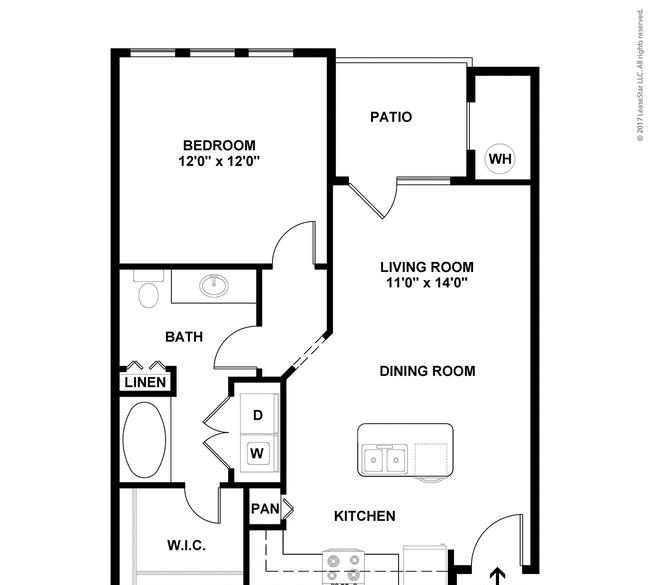 1 bed, 1 bath, 599 sqft