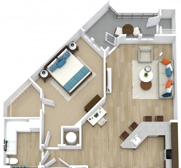 1 bed, 1 bath, 598 sqft