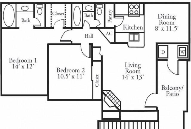 2 beds, 2 bath, 442 sqft