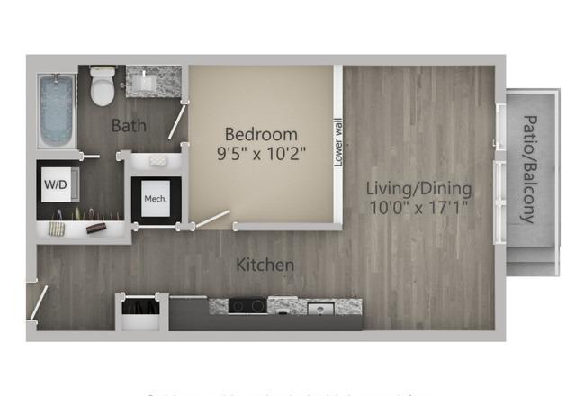 1 bed, 1 bath, 480 sqft