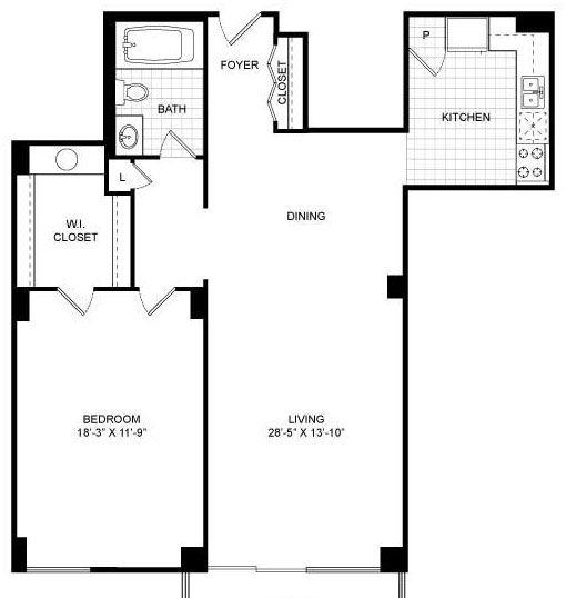 1 bed, 1 bath, 685 sqft